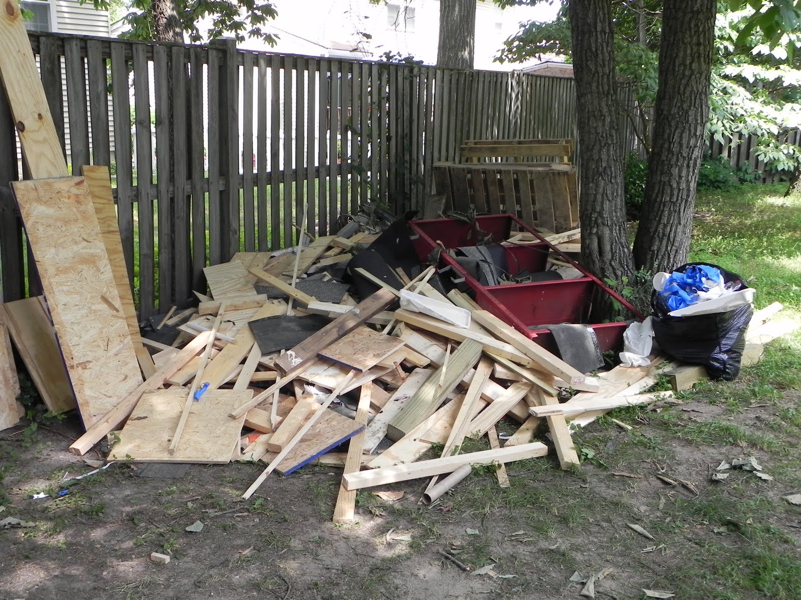 Ok... well, we still have to paint the left side and the back, and the inside, AND level the ground around the porch, return unused building supplies and get rid of the giant junk pile in the back yard! (Free scrap wood for the taking! Just let me know before next weekend!) AND make curtains, and find toys, and decorate..... I think that's it....
